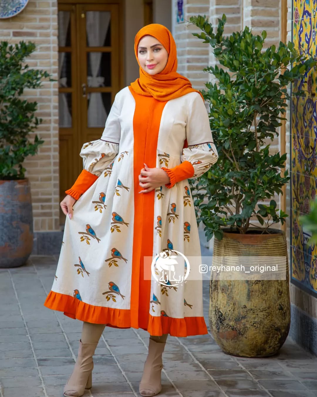 مانتو سوزن دوزی کرم رنگ باغ پرنده 🦜