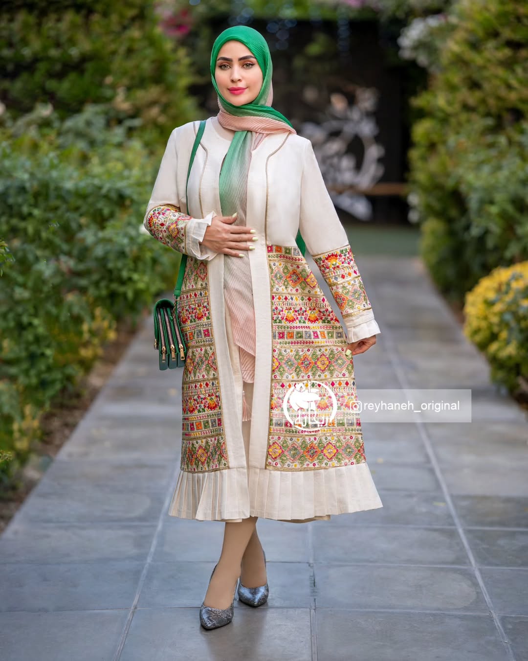 جلوی مانتو سوزن دوزی و پشت مانتو ساده