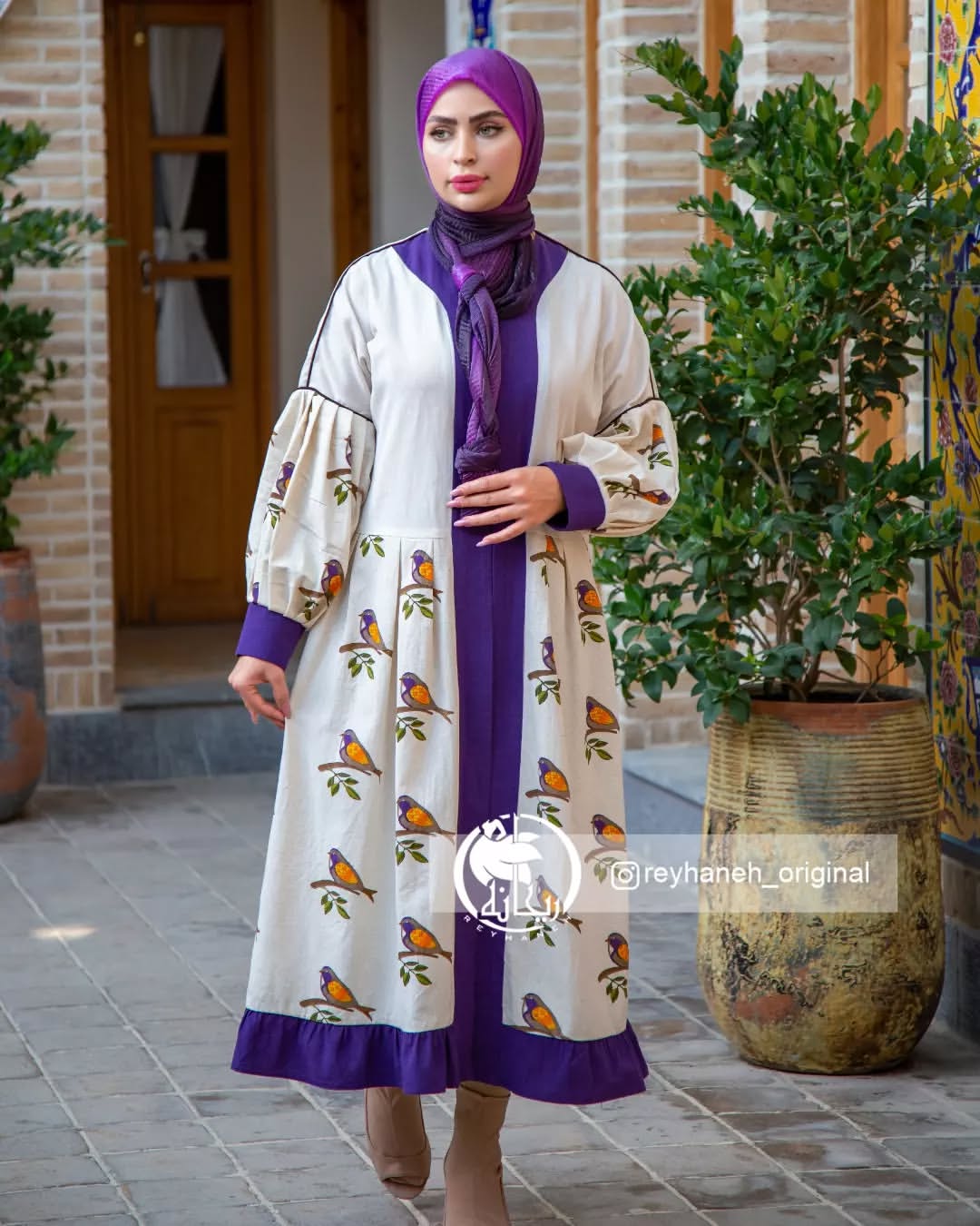 مانتو پرستویی بنفش مدل آستین کیمونو
