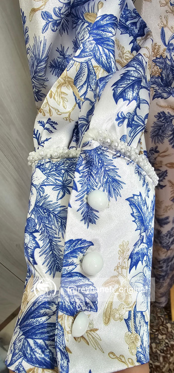 آستین ها برای راحتی و زیبایی شما به شکل مچی طراحی شده اند و برای زیبایی بیشتر با نوار مغزی منجوق بسیار زیبا در قسمت مچ و بالای آستین مغزی دوزی شده اند.